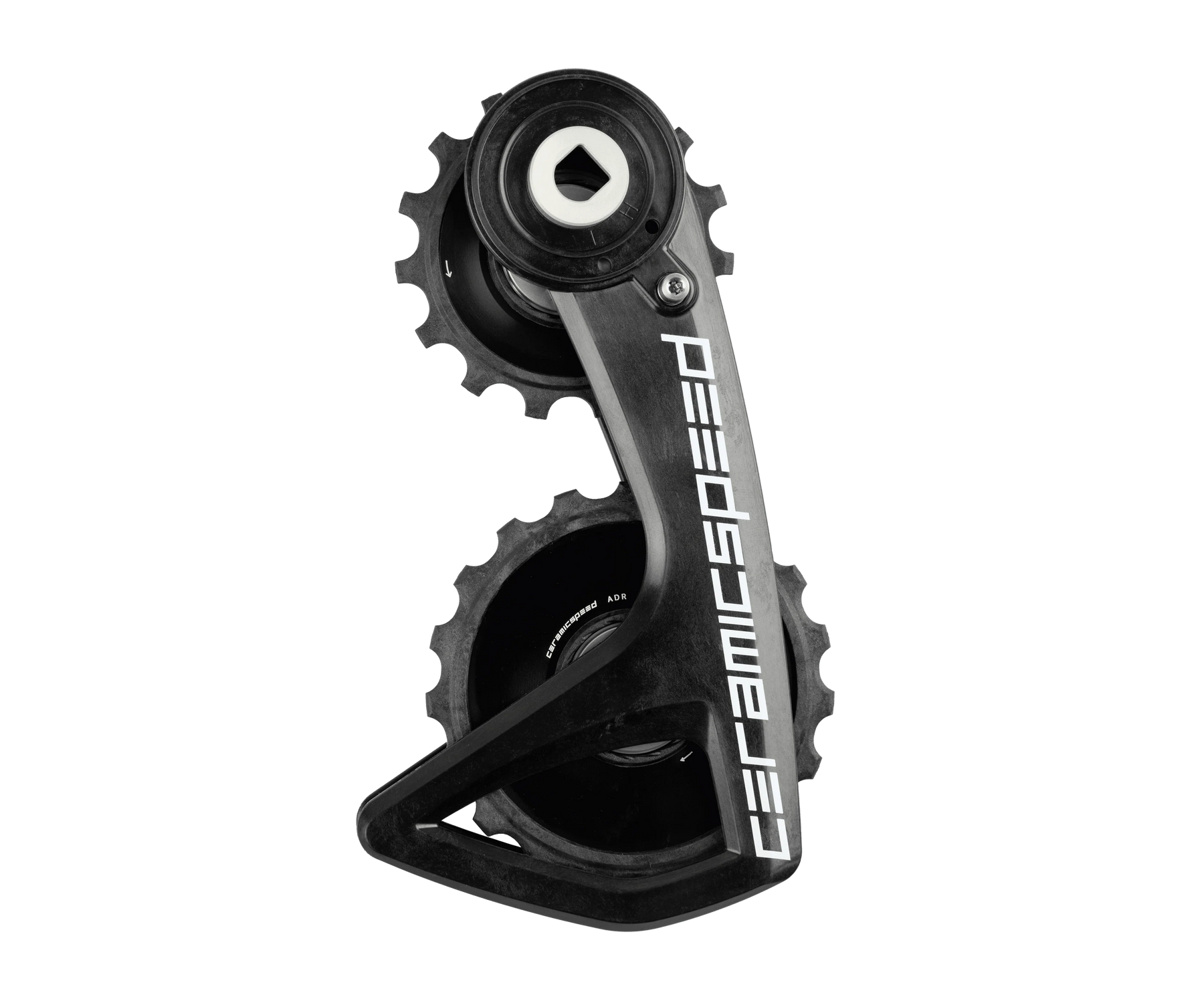 El sistema de poleas sobredimensionadas (OSPW) de Ceramicspeed es probablemente la mejor manera de optimizar el rendimiento. Las poleas sobredimensionadas, con 15 dientes en la parte superior y 19 dientes en la inferior, minimizan considerablemente el movimiento de los eslabones de la cadena al pasar por la jaula, reduciendo significativamente la fricción y el esfuerzo. Además, la vida útil se prolonga significativamente en comparación con otros sistemas disponibles en el mercado.